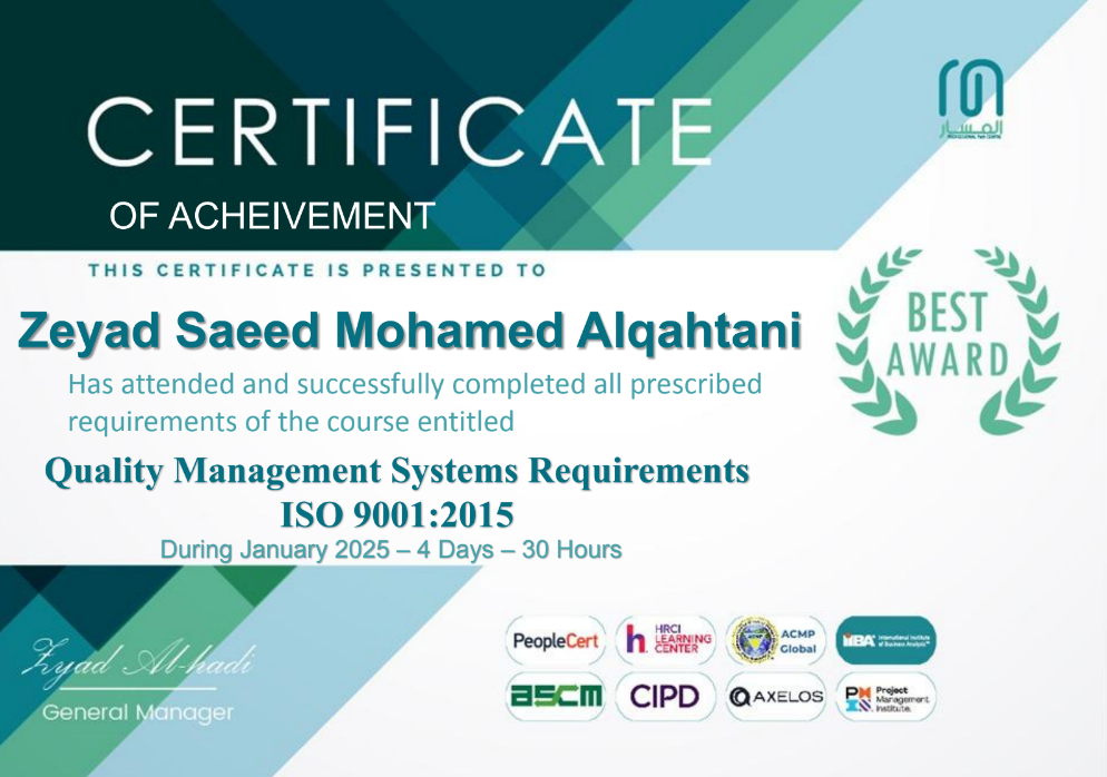 تعلم كيفية تطبيق معايير ISO 9001 داخل المؤسسات،وتعلم كيفية تصميم وتنفيذ نظام إدارة جودة فعال يضمن التحسين المستمر، ويفتح لك أبواب الفرص المهنية في مجال الجودة محليًا وعالميًا.